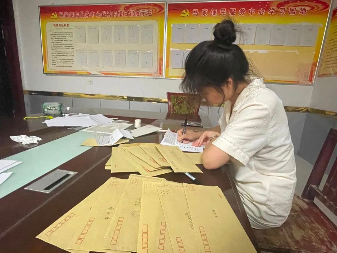 8月16日凌晨,“温暖同行”实践队赴淳化县十里塬镇梁家庄村的活动已接近尾声。结束一天忙碌的工作后,团队成员在信纸上给孩子们写下了最美好的祝福以及对孩子们疑问的解答。信中有叮咛,信中有期盼。一笔一画之间,传递的是情感,温暖的是人心。