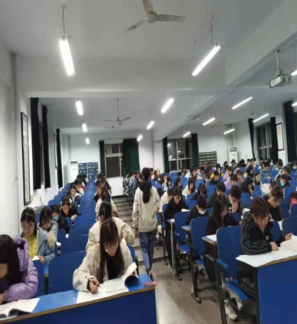 考试来临之际,同学们有序入场并安静地在考场坐下。本次考试以公平、公正、公开的原则进行,考卷发下之后,考生们能够认真答题。