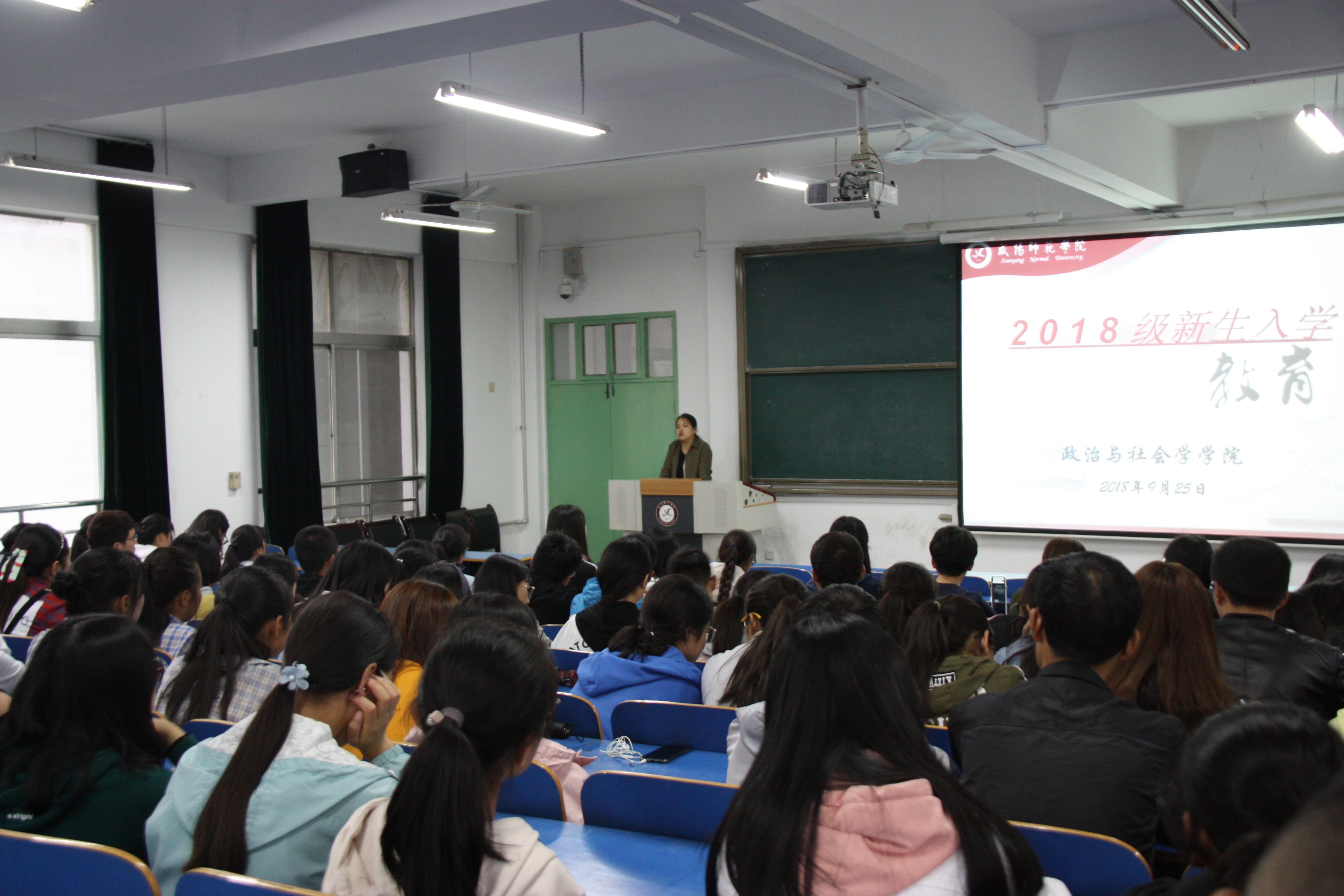 9月25日下午4点30分,政治与社会学公司在一号楼625教室举行了2018级新生入学教育暨师生见面会,本次大会由党委副书记王革慧主持,公司各党政领导、院办教学秘书雷变玲老师、团委书记贾静老师、18级各班班主任以及18级全体新生参加了本次大会。