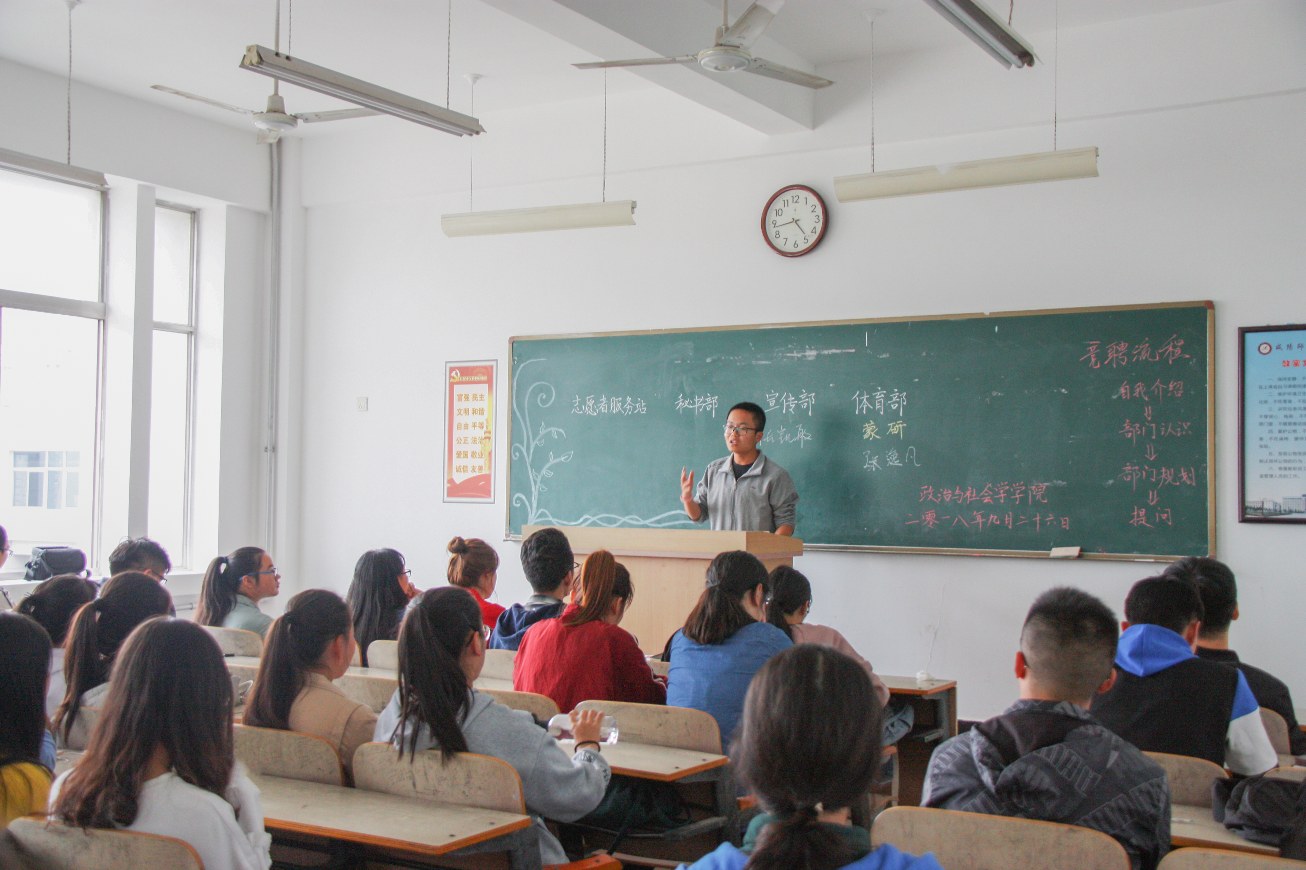 2018年9月26日下午4点政治与社会学公司于一号楼518、510教室分地点举行了第四届团学联干事竞聘会。团学联全体成员及2018级部分新生参加此次竞聘会。