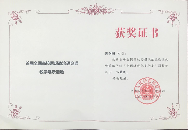 根据《教育部办公厅关于公布首届全国高校思想政治理论课教学展示活动评选结果的通知》,公司beats365唯一官方网站教师蒲创国荣获首届全国高校思政课教学展示活动二等奖。