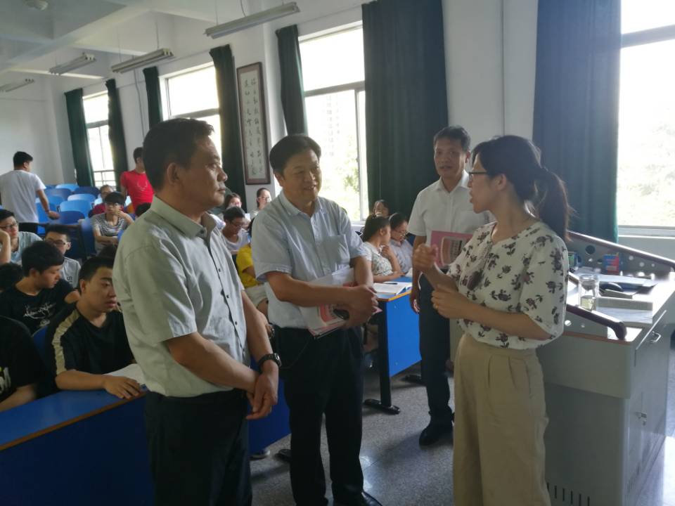 6月11日,陕西省教育厅副厅长王紫贵来公司督查调研思政课教学工作。下午2:30分,王副厅长走进课堂,听取了公司贺敏老师讲授的《毛泽东思想和中国特色社会主义理论体系概论》课。课堂上,贺敏老师就深化供给侧结构性改革一节,利用PPT展示和身边事例解析理论概念、介绍国家政策措施、贯彻十九大相关精神。王副厅长认真听讲,边听边记。课后,王副厅长就教学内容的深度和广度、方法革新、师生互动等与贺敏教师进行了亲切交流。