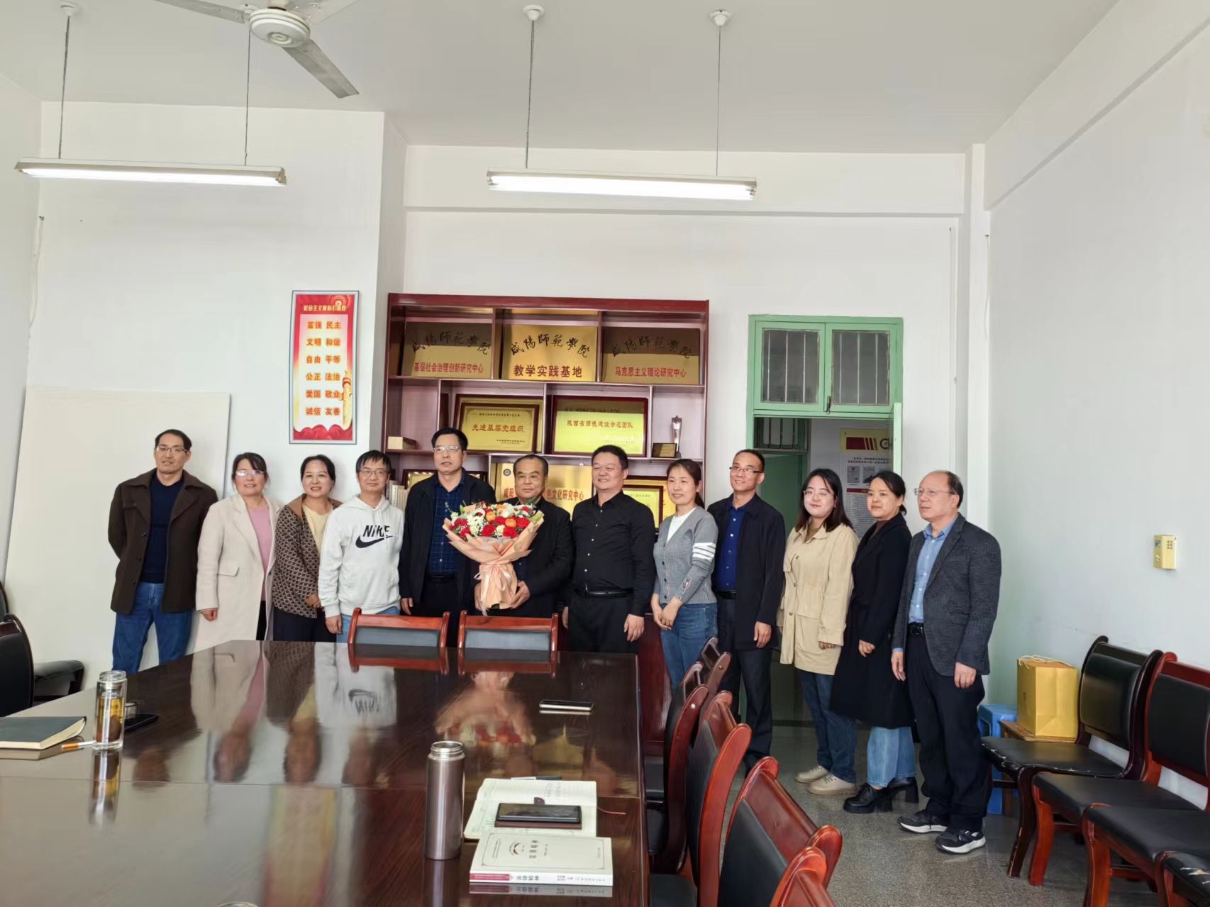 会议在欢声笑语中开始,教师代表薛菲为徐老师献花,工会主席蒲创国为徐老师赠送了慰问品。徐老师通过回顾自己在教育战线39年的奋斗史,表达了对BEAT365英国官网网站、对beats365唯一官方网站的深厚感情,并表示自己尽管已经退休,但永远都是beats365唯一官方网站的一员。赵国龙书记代表公司对徐老师为马院做出的杰出贡献表示感谢,并欢迎徐老师常回家看看,多为马院建设献计献策。