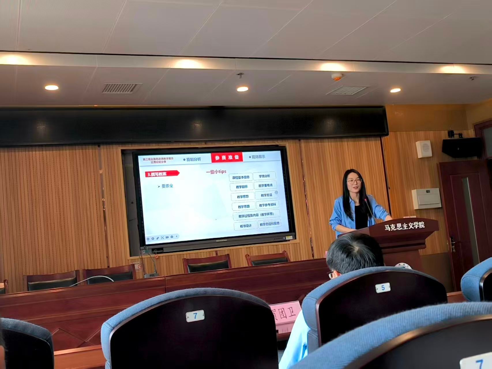 石伟琦老师以第三届全国思政课教学展示比赛为主线,围绕赛制解析、备赛策略与现场展示三大板块,展开了系统而深入的讲解。她结合自身参赛经历,从竞赛规则与评审标准的精准把握,到学情分析、教案编写、课件优化及说课视频录制等各环节,全面分享了其宝贵经验。石老师特别强调教学设计的系统性与创新性,为在场教师提供了切实可行的教学提升路径。