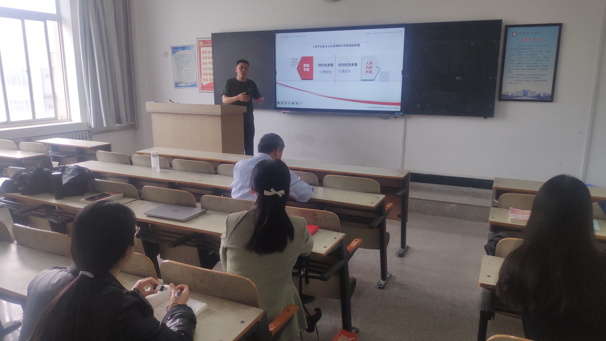 本次集体备课会围绕《毛泽东思想和中国特色社会主义理论体系概论》第四章为主要内容,展开同课异构的课程教学探讨。全体教师围绕“社会主义道路初步探索的重要理论成果”为核心内容,结合各自员工专业特点和学科知识结构,分别展示了自己的课程设计、讲授思路和教学方法。老师们的讲授各有特点、异彩纷呈。展示结束后,教研室老教师、教授对老师们的课程讲授进行了点评。