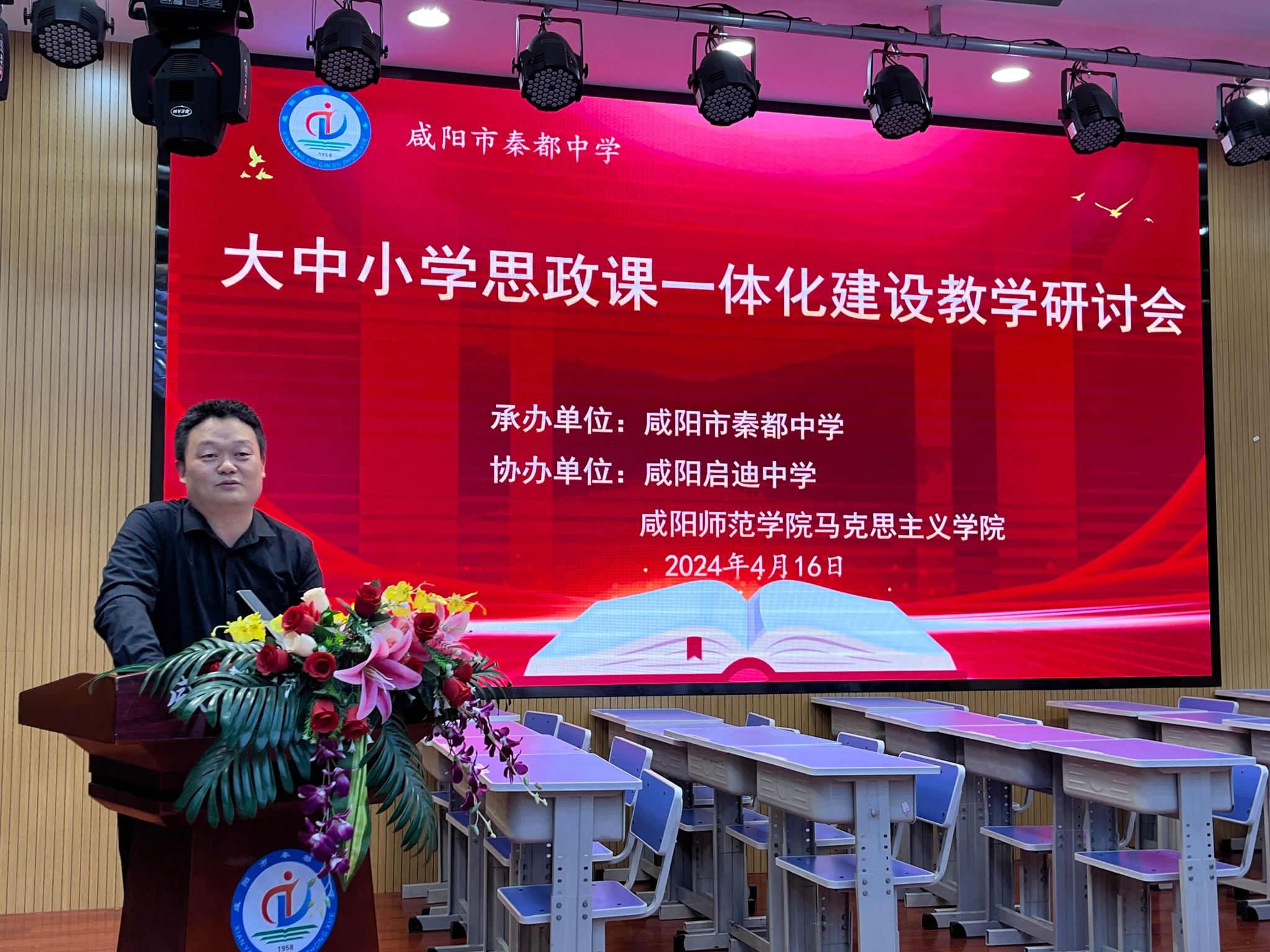 秦都中学党支部书记、董事长巨立博讲话。他强调本次活动是我们校际之间的横向交流研讨。党的二十大报告从国家教育的战略高度提出大中小学思政课一体化建设。我们应该遵循员工的认知规律,小课堂,大社会。发挥员工的能动性,关联课堂与生活。用思政课讲好中国故事,既要讲好我们伟大祖国过去的故事,也要讲好现在的故事,讲好中国梦未来的故事。加强大中小思政课一体化建设,是为培养德智体美劳全面发展的社会主义建设者和接班人奠定了坚实的基础。
